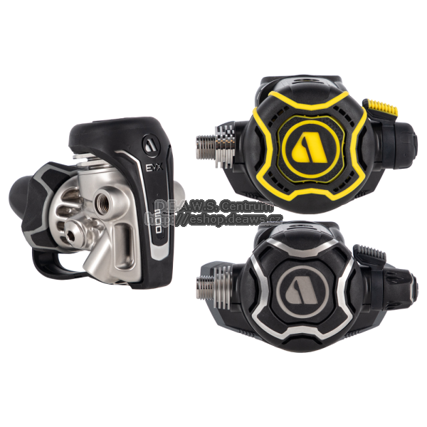 inovativní membránová konstrukce overbalanced – zajišťuje optimální středotlak celokovové, kované tělo s maximalizací plochy pro výměnu tepla s okolím otvor pro průtok vody v okolí HP ventilu pro výměnu tepla s okolím integrovaný systém ACD (Auto-Closure Device) chrání před vniknutím vody 5 středotlakých portů pro flexibilní konfiguraci 2 vysokotlaké porty uzavřený suchou komorou - zesílená membrána pod nárazuvzdorným krytem masivní tepelný výměník v okolí suché komory a hlavní membrány materiál: mosaz povrchová úprava: satin chrom 2. stupeň EVX200 navržen pro hladké, přirozené dýchání díky vnitřnímu uspořádání podporujícímu laminární proudění vzduchu – bez turbulencí, s minimálním odporem a nižší hlučností ergonomický ovladač Venturiho efektu robustní ovladač nádechového odporu pro snadnou manipulaci i v silných rukavicích tvrdý přední kryt se zabudovaným kovovým plátem velké tlačítko sprchy masivní tepelný výměník otočná konstrukce pro konfigurace s připojením hadice z levé nebo z pravé strany vyměnitelné výdechové deflektory náústek COMFO-BITE 2. stupeň octopus EVX200navržen pro hladké, přirozené dýchání díky vnitřnímu uspořádání podporujícímu laminární proudění vzduchu – bez turbulencí, s minimálním odporem a nižší hlučností ergonomický ovladač Venturiho efektu tvrdý přední kryt velké tlačítko sprchy masivní tepelný výměník otočná konstrukce pro konfigurace s připojením hadice z levé nebo z pravé strany vyměnitelné výdechové deflektory Hadice opletené flexibilní oboustranně otočné DSW hadice odolné vůči chladu i opotřebení 1 x FLEXI černá 0,75 m 3/8"UNF DOUBLE SWIVEL 1 x FLEXI žlutá 0,9 m 3/8"UNF DOUBLE SWIVEL