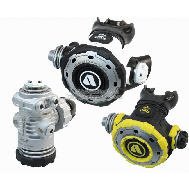 Regulátor MTX-R je založený na modelu MTX, který byl vytvořen dle požadavků experimentální potápěčské jednotky námořnictva Spojených států amerických (United States Navy Experimental Dive Unit) pro potápění v extrémně studené vodě. MTX-R je přizpůsoben pro výkon v téměř mrznoucí vodě v hloubkách přes 60 m. Robustní regulátor má v rámci celkové odolnosti minimum ovládacích prvků a na kritických místech je zesílen a chráněn nárazuvzdornými kryty. Veškeré součásti jsou navrženy tak, aby riziko zamrznutí regulátoru bylo sníženo na minimum a to i při extrémním použití (testováno při současném dýchání ze dvou 2. stupňů umístěných na jednom 1. stupni ve studené vodě v hloubce 60 m). Regulátor MTX-R navíc nabízí bezkonkurenční možnosti konfigurace. 1. stupeň MTX-Rcelokovové, kované tělo s maximalizací plochy pro výměnu tepla s okolím 4 paralelní MP porty na otočné hlavě axiální MP port s tepelným výměníkem a nárazuvdorným krytem 2 HP porty vychýlené vůči ose 1. stupně pro optimální vedení hadic DS systém - suchá komora uzavřená extra zesílenou membránou integrovanou v nárazuvzdorném krytu masivní tepelný výměník v okolí suché komory a hlavní membrány robustní kovové šroubení pro snadnou manipulaci v rukavicích odolná povrchová úprava satin chrome DIN 300 bar EN250A hmotnost: 755 g (DIN 300 bar) 2. stupeň MTX-R pneumaticky vyvážený DCE - možnost nasazení dvou typů výdechových deflektorů RVS - možnost připojení hadice z levé nebo z pravé strany masivní tepelný výměník v okolí sedla kovem zesílený přední kryt nárazuvzdorné plochy na kritických místech - předním krytu, horní části a na boku 2. stupně všechny vstřikované součásti a náústek s antibakteriální přísadou kulaté tlačítko sprchy pro snadné ovládaní v rukavicích anatomický "Comfobite" náústek silikonový výdechový ventil hmotnost: 280 g Záložní 2. stupeň MTX-R OCT pneumaticky vyvážený DCE - možnost nasazení dvou typů výdechových deflektorů RVS - možnost připojení hadice z levé nebo z pravé strany masivní tepelný výměník v okolí sedla kovem zesílený přední kryt nárazuvzdorné plochy na kritických místech - předním krytu, horní části a na boku 2. stupně všechny vstřikované součásti a náústek s antibakteriální přísadou kulaté tlačítko sprchy pro snadné ovládaní v rukavicích standardní náústek silikonový výdechový ventil hmotnost: 265 g Hadice 1 x FLEXI černá 0,75m 3/8"UNF DOUBLE SWIVEL 1 x FLEXI žlutá 0,9 m 3/8"UNF Příslušenství 1 x výdechové deflektory krátké
