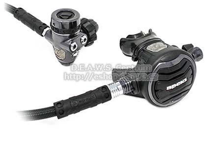 První stupeň FSR5 TUNGSTEN je mebránový vyvážený, uzavřený membránou. Tělo FSR5 je vyrobeno z jednoho kusu materiálu, což umožňuje efektivnější vedení kanálků, kterými proudí vzduch uvnitř prvního stupně ke středotlakým výstupům. Pět ergonomicky umístěných středotlakých 3/8"UNF výstupů umožňují ideální směřování hadic směrem k potápěči. První stupeň FST5 TUNGSTEN má vyměnitelné vysokotlaké sedlo. Druhý stupeň XTX200 lze díky systému RVS používat jako levostranný nebo pravostranný. Jednoduchou přestavbu provede každý servisní technik Apeks. V základní výbavě XTX200 jsou dva typy výdechového deflektoru (malý a velký). Jejich záměna je velmi jednoduchou operací, kterou zvládne každý běhěm chvilky. XTX200 je vybaven tepelným výměníkem v okolí ventilu. Nádechový odpor lze plynule regulovat pomocí šroubu. Nový silikonový výdechový ventil zlepšuje komfort dýchání. Celková WOB - je výjimečných: 0,41 Joulů/litr. Tech. data: 1. stupeň FSR5 TUNGSTEN membránový vyvážený uzavřený suchou komorou - systém DS 5 x MP výstup 3/8" UNF 2 x HP výstup 7/16" UNF možnost umístění pátého, axiálního MP výstupu 3/8" UNF umístění MP výstupů: plochy vyměnitelné HP sedlo z materiálu ARCAP materiál: mosaz, kovaný povrchová úprava: PVD (titan, zirkonium, chrom) hmotnost: 750 g DIN 300 bar, pogumované šroubení EN250A