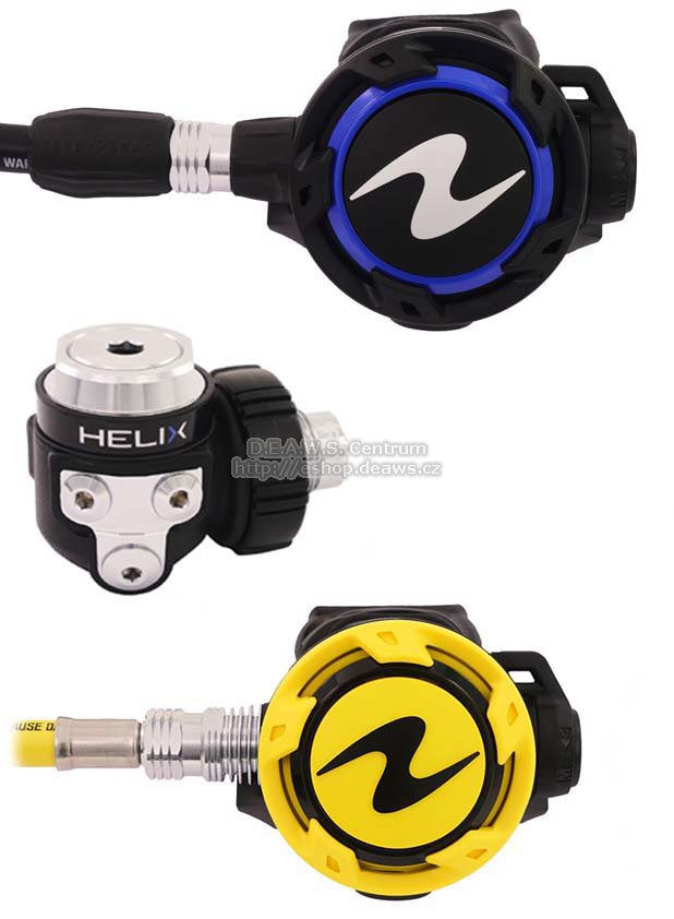 Automatika HELIX představuje v současné době nejlepší volbu na trhu v poměru cena/výkon, díky dechové práci, která je na dechovém přístroji ANSTI hodnocena jako „výborná“ a dalším skvělým funkcím včetně ACD (patentované automatické uzavírání prvního stupně před nečistotami). Charakteristika: ACD – Automaticky uzavře první stupeň po sejmutí automatiky z ventilu lahve a zachovává tak první stupeň zcela čistý a správně promazaný, což je zároveň bezpečnější pro použití s obohacenou směsí kyslíku. Vyvážený membránový první stupeň poskytuje výborný a stabilní výkon. Pneumaticky vyvážený druhý stupeň zajišťuje plynulé a snadné dýchání. K dispozici ve verzi DIN (max. 300 bar) nebo INT (max. 232 bar). První stupeň ve tvaru T optimalizuje umístění 4 středotlakých a 2 vysokotlakých portů. Náhradní díly jsou běžné i pro ostatní modely Aqua Lung a servis je tak velmi snadný. Venturi páčka se snadno používá pro zabránění freefow na hladině nebo zlepšení výkonu v hloubce. Patentované výměníky tepla, které obklopují mechanizmus ventilu, rozptylují chlad způsobený rozpínáním plynu a ohřívají mechanizmus teplotou okolní vody. Nová automatika z originální krabice je kompatibilní s EAN 40. Automatika je vybavena patentovaným náustkem Aqua Lung Comfo-bite™, který je vybaven utahovací páskou na více použití. Označení PRO označuje, že automatika získala certifikaci pro studenou vodu(pod 10°C. Tech. data: Počet modelů: 4 – HELIX DIN, HELIX INT, HELIX PRO DIN, HELIX PRO INT Typ prvního stupně: Vyvážená membrána ACD: Ano Počet HP portů: 2 Počet MP portů: 4 Průtok prvního stupně: 1450 l/min Hmotnost prvního stupně DIN: 527 g Hmotnost prvního stupně INT: 717 g Suchá komora: Pouze u modelu PRO Povrch prvního stupně: Chromovaná námořnická mosaz Typ druhého stupně: Pneumaticky vyvážený Ovládání: Páčka venturi Náustky: 2 – Comfobite nasazený a standartní s křidélky v balení Lip shield (ochrana rtů): Pouze u modelu PRO Výměníky tepla: Na všech modelech Hmotnost druhého stupně: 186 g Hmotnost druhého stupně PRO: 207 g Délka LP hadice: 730 mm Celková dechová práce HELIX (WOB): 0,85 joulů/litr Celková dechová práce HELIX PRO (WOB): 0,95 joulů/litr Kompatibilita s Nitrox: Ano do 40% pokud je automatika nová, originálně balená