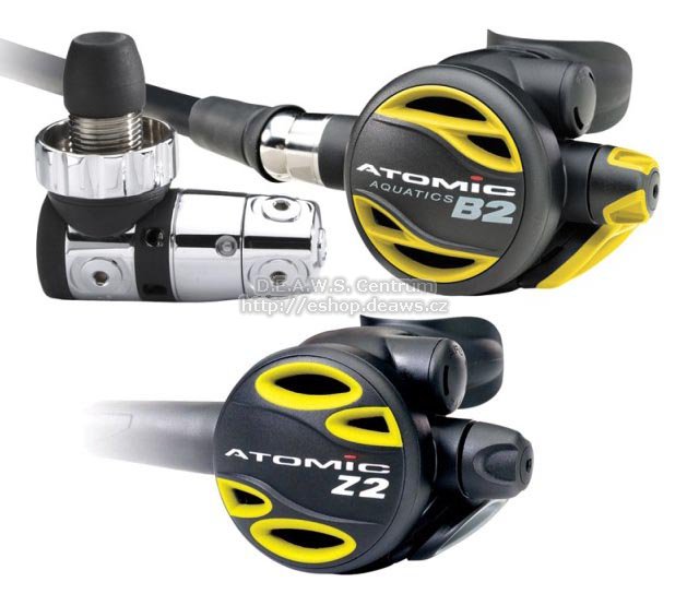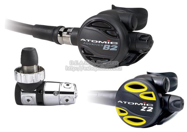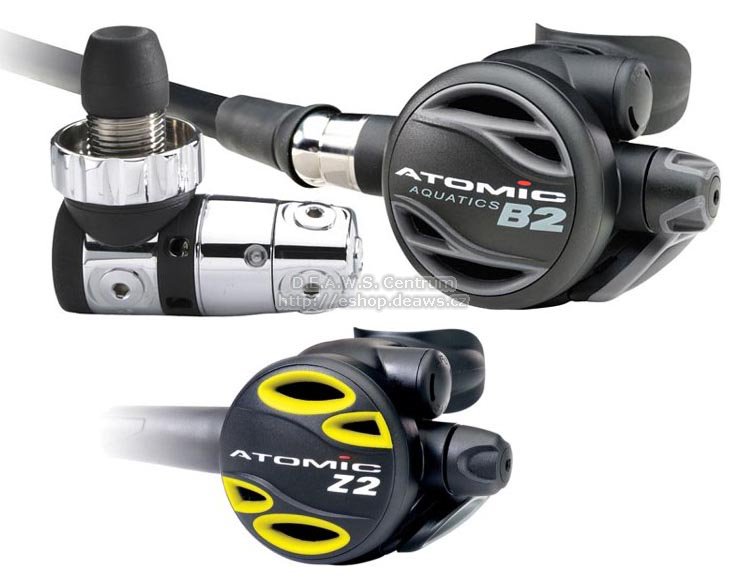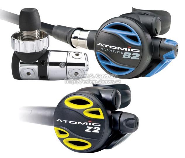 Perfektní kombinace komfortu, výkonu a stylu nyní ve zvýhodněném setu kde si můžete vybrat svoji barevnou kombinaci. Ergonomicky navržený 2. stupeň činní z modelu B2 nejkomfortnější 2. stupeň na světě. B2 je pokračovatelem legendárního regulátoru Atomic B1. B2 : Komfortní kolínko mezi hadicí a 2. st. (exkluzivně u značky Atomic). Nárazu odolný 2-barevný kryt membrány 2. stupně (barvy: šedá, modrá a žlutá). Anatomický, ortodontický náustek z dvojitého silikonu. Celotitanový 2. stupeň - lehká konstrukce znamená minimální zatížení čelistí. Atomic patentovaný "Seat Saving Orifice" - omezovač přítlaku sedla. Exkluzivní "Jet Seat" - větší průměr pístu a sedel jsou nespornou výhodou z hlediska bezpečnosti provozu v extrémně chladných vodách. Patentovaná "Automatic Flow Control" - AFC - pro největší výkon v každé hloubce. Možnost použití Nitroxu až do 40%. Limitovaná životní záruka (30 let). Z2: Vysoce kvalitní II.stupeň jehož kvalita je dána použitými patenty AA včetně ochrany zirconiem a titanem. Určen k modelům Z1,Z2,B1,B2