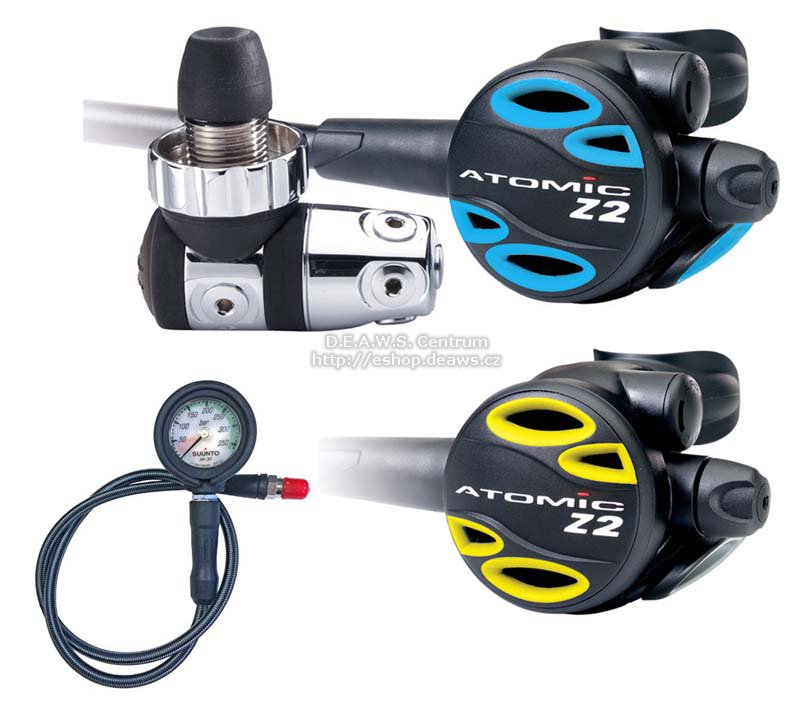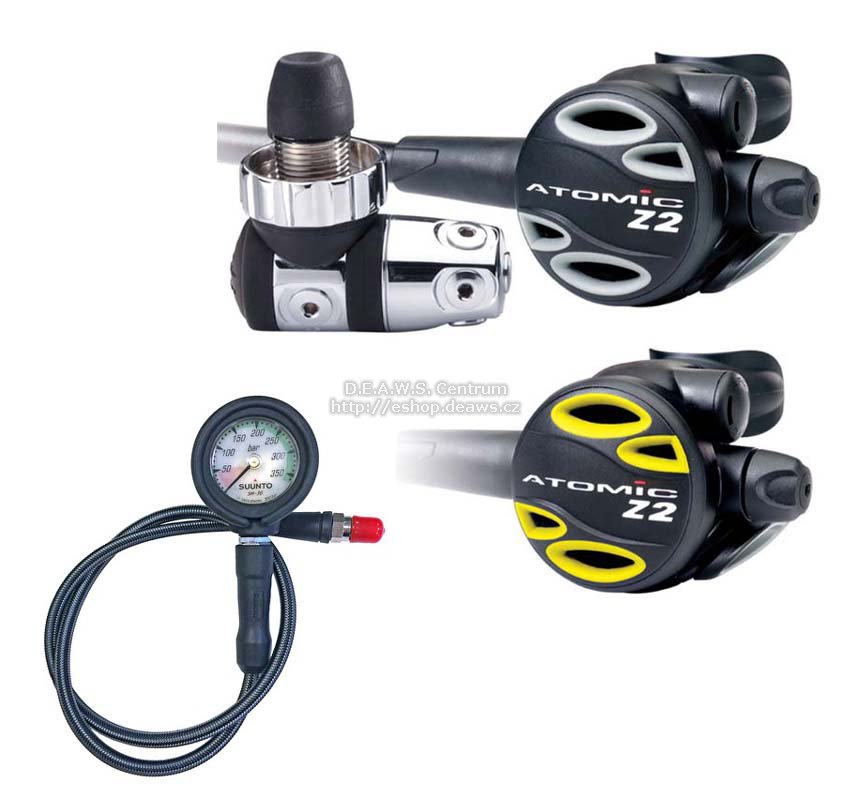 Spojili jsme pro vás v akci regulátor Z2 DIN a Z2 OCTOPUS do ještě výhodnějšího setu a to včetně kvalitního tlakoměru SM36 Suunto! "Z“ v názvu regulátoru označuje použití Zirkonia, jako materiálu zajišťujícího povrchovou ochranu mosazného těla 1. stupně. Atomic vyvinul speciální proces pokovování mosaz – chrom – zirkonium a tím zajistil 3-4x vyšší odolnost proti korozi, než při běžném chromování.