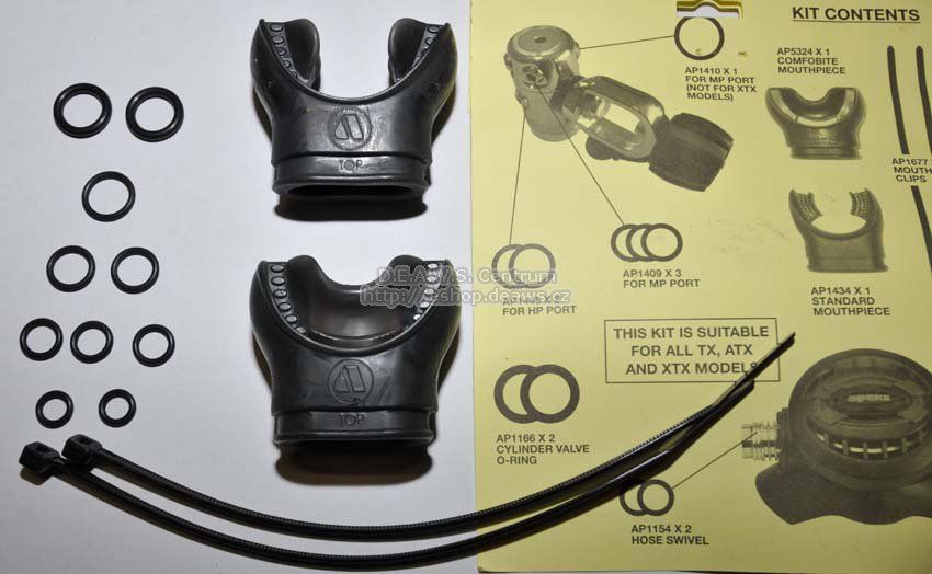 Cestovní sada základních náhradních dílů pro automatiky Apeks řady TX, ATX a XTX a také automatiky AQUALUNG všechny modely. Sada obsahuje: 2x Comfobite náustek + 2x zajišťovací pásky 2x DIN o- kroužek 3x LP o-kroužek 3/8" 1x LP o-kroužek 1/2" 2x HP o-kroužek 7/16" 2x LP o-kroužek - k připojení LP hadice k II.st