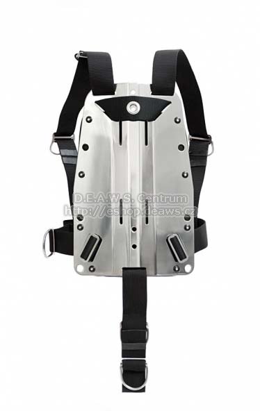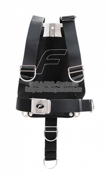 Postroj / zádová deska - FLY DIR: Zádová deska z eloxovaného hliníku nebo leštěného nerezu Fixní průběžný PA popruh 7x Žebříček, 5x D-kroužek Zádová kapsa na bójku Nastavitelný mezinožní popruh s D-kroužkem Bederní popruh + kovová přezka s logem „F“