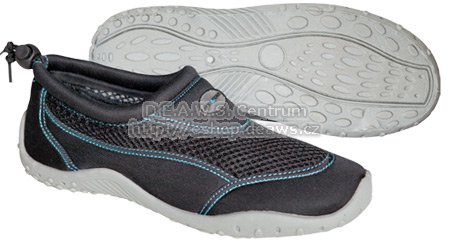 Plážové botky pro různé využití na pláži, do vody, surfování, rafting atd. Boty jsou vhodné jako nesmekavá obuv na loď (podrážka je šedá a nešpiní) a také chrání chodidlo před poraněním o kameny a mořské ježky. Díky stahovací šňůrce na patě jsou boty pohodlné a dobře drží na noze. Boty rychle osichají díky vzdušné síťce. Slabý neopren na špičce chrání prsty. Již od dětských velikostí.