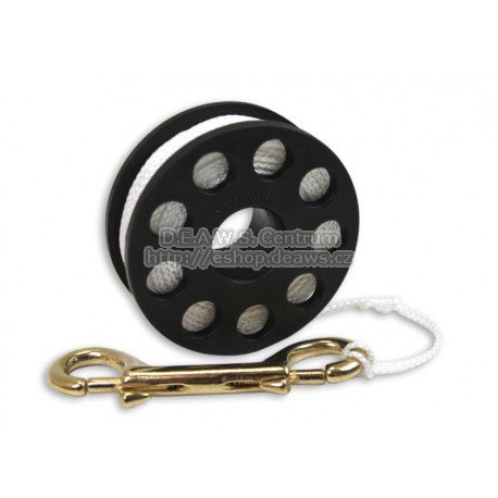 Kompaktní navíjecí bubínek s lanem cca. 20 m a mosaznou karabinkou, ideální pro stoupající deko bóji, ale i pro jiné využití, kdy potřebujete malý navíjecí bubínek při potápění. Při vypouštění dekompresní bójky jednoduché odvíjení a regulace rychlosti palcem. Tech. data: Šířka bubínku 27mm, průměr 77mm a návin cca 20 metrů.