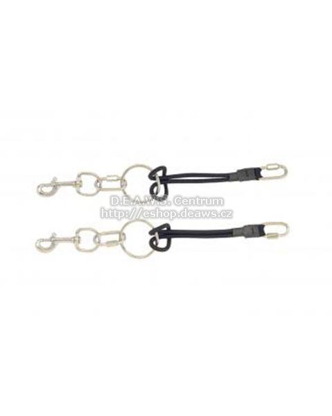 Textilní gumicuk (Bungee) k výrobě závěsu na krk k záložnmu II. stupňi regulátoru nebo na připevnění další techniky při záměně za klasické náramky jako jsou kompasy, počítače, tabulky, žakety (BCD), deco bóje, stage láhve a další gumová očka ve sportovním i tech. potápění atd. a to na ruce, krk nebo do kapes suchých i mokrých obleků. Takto upravené přístroje se Vám budou rychleji oblékat a svlékat a při stlačení obleku v hloubce drží stejně dobře jako u hladiny na tom správném místě kde jste si jej dali. Na fotografii jsou některé modely II. st s instalovanými ověsy.Podrobnější návod na výrobu z tohoto gumicuku naleznete též na našem domovském webu zde.