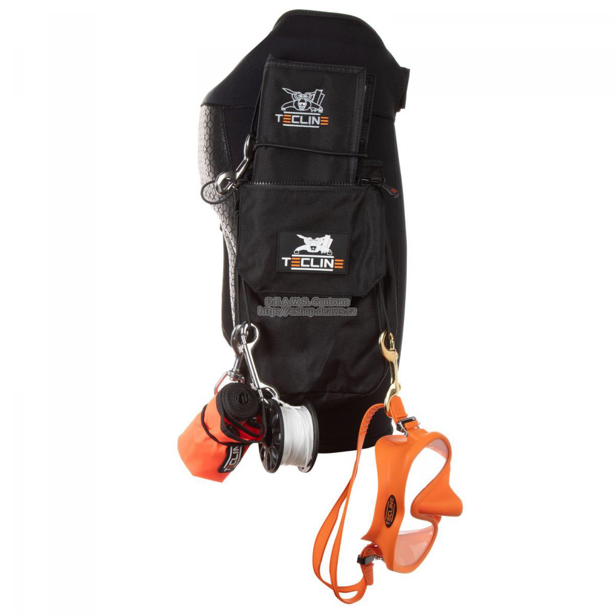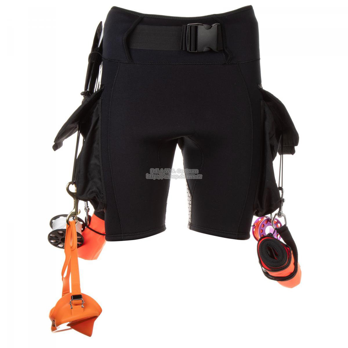 Tecline Cargo Shorts jsou univerzálním systémem pro přenášení potápěčského příslušenství napříč různými druhy potápění. Při potápění v teplé vodě je můžete nosit přímo na těle, a pokud používáte neopren nebo suchý oblek bez kapes, můžete je nosit přes oblek. Šortky se hodí pro jakoukoli potápěčskou konfiguraci od jakéhokoli výrobce.Už nikdy nebudete muset řešit, kam dáte všechny své nezbytnosti, jako jsou wetnotes, bójka či náhradní maska. REC, TEC, CAVE, WRECK – jakýkoli typ příslušenství si můžete vzít na ponor umístěním do 2 velkých a 2 malých víceúčelových kapes. Bungee poutka pomáhají předcházet ztrátě vybavení, zatímco další přihrádky a kapsy na zip uvnitř chlopní usnadňují organizaci. Kapsy mají drenážní otvory a chlopně se silným suchým zipem a stahovacími poutky se snadno používají i v silných rukavicích. Materiál: Tecline Cargo Shorts jsou vyrobeny z pružného neoprenu, v zadní části vyztuženy gumou. Díky vysokému pasu pohodlně sedí na ženské i mužské postavě. Vestavěný skrytý široký pásek s pohodlnou přezkou (fungující i v chladných podmínkách) udržuje šortky v pase stabilní i při plně naložených kapsách. Tabulka velikostí: Rozměry (cm)