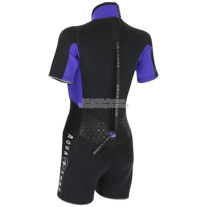 3mm dámský oblek vhodný pro šnorchlování nebo potápění v teplých vodách. V-Lycra límec pro větší komfort. Zádový zip. Oblast okolo krku z Aqua Flex® neoprenu. Manžety na rukách a nohách z Glideskin neoprenu. Dvojité ploché stehy.