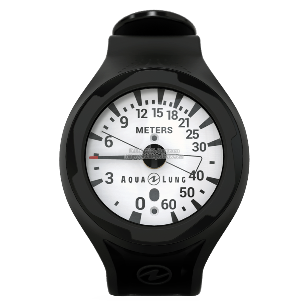 Hloubkoměr DEPTH GAUGE ANALOGIC 60m od firmy Aqua Lung se speciálně navrženou luminiscenční hloubkovou stupnicí umožňuje snadné čtení údajů i v těch nejextremnějších podmínkách - špatná viditelnost, noc, jeskyně, vrak atd. Tech. data: Velmi dobře čitelné velké číslice pro přesné a snadné čtení i v menších hloubkách. Pásek je navržen tak, aby obsáhnul všechny velikosti zápěstí. Vlečná ručička pro indikaci maximální hloubky po započetí výstupu z hloubky ostane na max. dosažené hloubce. Luminiscenční stupnice pro snadné čtení i za snížené viditelnosti. Maximální hloubka 60 metrů. Gumové pouzdro do kterého pasuje přpadně i počítač i300.