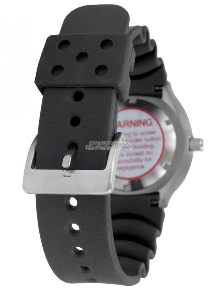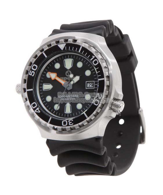 Profesionální potápěčské hodinky PROFESSIONAL 1000 HELIUM SAFE Apeks nabízí přesnost, odolnost, spolehlivost, styl a garantovanou vodotěsnost do 1000m! Tech. data: Robustní pouzdro z nerez oceli. Odolná černá jednosměrná luneta z 316L nerez oceli. Šroubovací korunka umístěná v pozici 4h. Minerální sklo. Pojistný helium ventil s ochrannou korunkou (ventil se otevře pokud je tlak uvnitř hodinek o 4,5bar +/- 1,5bar větší než okolní tlak). Strojek quartz Seiko-Epson VX42E. Vodotěsnost 1000m. Luminiscenční číselník a ručičky se zvýrazněnou minutovou ručičkou. Pružný polyuretanový pásek. Funkce: hodiny,minuty, sekundy a datum (den v měsíci) Hmotnost vč. pásku: 104 g.