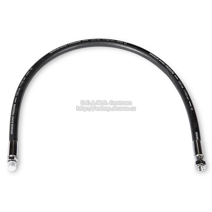 Vysokotlaká hadice v DIR délce - kratší než standartní hadice dodávané k tlakoměrům. Používá se u základních kompenzačních křídel s backplaty.