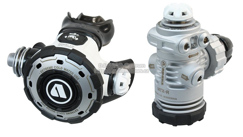 Regulátor MTX-R je založený na modelu MTX, který byl vytvořen dle požadavků experimentální potápěčské jednotky námořnictva Spojených států amerických (United States Navy Experimental Dive Unit) pro potápění v extrémně studené vodě. MTX-R je přizpůsoben pro výkon v téměř mrznoucí vodě v hloubkách přes 60 m. Robustní regulátor má v rámci celkové odolnosti minimum ovládacích prvků a na kritických místech je zesílen a chráněn nárazuvzdornými kryty. Veškeré součásti jsou navrženy tak, aby riziko zamrznutí regulátoru bylo sníženo na minimum a to i při extrémním použití (testováno při současném dýchání ze dvou 2. stupňů umístěných na jednom 1. stupni ve studené vodě v hloubce 60 m). Regulátor MTX-R navíc nabízí bezkonkurenční možnosti konfigurace. 1. stupeň MTX-Rcelokovové, kované tělo s maximalizací plochy pro výměnu tepla s okolím 4 paralelní MP porty na otočné hlavě axiální MP port s tepelným výměníkem a nárazuvdorným krytem 2 HP porty vychýlené vůči ose 1. stupně pro optimální vedení hadic DS systém - suchá komora uzavřená extra zesílenou membránou integrovanou v nárazuvzdorném krytu masivní tepelný výměník v okolí suché komory a hlavní membrány robustní kovové šroubení pro snadnou manipulaci v rukavicích odolná povrchová úprava satin chrome DIN 300 bar EN250A hmotnost: 755 g (DIN 300 bar) 2. stupeň MTX-R pneumaticky vyvážený DCE - možnost nasazení dvou typů výdechových deflektorů RVS - možnost připojení hadice z levé nebo z pravé strany masivní tepelný výměník v okolí sedla kovem zesílený přední kryt nárazuvzdorné plochy na kritických místech - předním krytu, horní části a na boku 2. stupně všechny vstřikované součásti a náústek s antibakteriální přísadou kulaté tlačítko sprchy pro snadné ovládaní v rukavicích anatomický "Comfobite" náústek silikonový výdechový ventil hmotnost: 280 g Hadice 1 x FLEXI černá 0,75m 3/8"UNF DOUBLE SWIVEL Příslušenství 1 x výdechové deflektory krátké