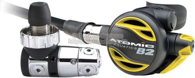 Naprosto shodný výkon jako má T2x, s použitím mosazného prvního stupně. B2 je alternativou k celotitanovému modelu T2x. Nízká dechová práce, kterou se Atomic proslavil je identická. V designu B2 je kladen důraz na ergonomii, proto je druhý stupeň B2 nejkomfortnější na světě, stejně jako u modelu T2x. Zásadním konstrukčním rozdílem je pochromované mosazné tělo prvního stupně, jehož výroba je ekonomičtější, aniž by to ovlivnilo výkon. To je důvod, proč B2 nasbírala nejvíce ocenění a doporučení v nezávislých testech ze všech regulátorů na trhu.