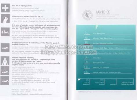 Rozsah: A5 rozměry 110 x 150 mm 44 stránek Obsahuje: Přehledný diagram řešení potápěčské nehody - dle DAN Stránka s osobními údaji Stránky s přehledem dosažených kvalifikací Listy pro evidenci ponorů Přehled kurzů IANTD (rekreační & technické) IANTD tabulka bezdekompresních a dekompresních ponorů Tento Logbook Vám umožní vést záznamy až o 36 ponorech, záznam jednoho ponoru na jednu stránku.