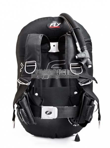 Postroj / zádová deska Postroj FLY Comfort Harness v komfortním provedení umožňuje uživateli maximální pohodlí při používání. Polstrované ramenní popruhy jsou pohodlné při nošení těžké výstroje a zamezí opotřebení potápěčského obleku. Zároveň odvracejí hrozbu DCS, která může být způsobena zarytím tvrdého popruhu do ramene během ponoru. Důmyslný stahovací systém prověřený parašutisty umožní rychlé a bezpečné nastavení délky ramenních popruhů podle momentální potřeby uživatele, aniž by došlo k rozpojení popruhů na 2 části! Absence plastových dílů a celkové provedení z nerez oceli zvyšují důvěru uživatele již ve fázi prodeje. Kovové komponenty jsou z nerezové oceli, kvalitně zpracovány a odhroceny, s precizní povrchovou úpravou. Žebříčky jsou vyrobeny z nerezu o síle 2 mm, což citelně zvyšuje jejich pevnost, na D-kroužky je použita kulatina průměru 5 mm. Zádová deska je dodávána ve 2 provedeních: leštěný nerez o síle 3 mm a hmotnosti 2,75 kg nebo hliník o síle 3 mm a hmotnosti 0,75 kg, s povrchovou úpravou přírodní elox. Hliníková verze je díky nízké hmotnosti vhodná pro cestování.