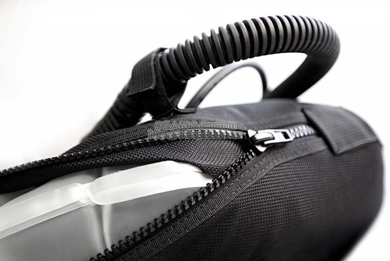 Zátěžový systém Komfortní varianta postroje je standardně vybavena dvěma 2-dílnými komfortními zátěžovými kapsami „QR“ , sestávajícími z napevno připevněné vnější a vyjímatelné vnitřní kapsy. Anatomicky tvarované vnitří kapsy jsou zajištěny dvěma způsoby: snadno ovladatelnou Quick Release přezkou v přední části a suchým zipem na svém obvodu. Každá z kapes umožní i přes svou kompaktní velikost a umístění v proudnici těla nést 6 kg sypané zátěže. Na výběr je i varianta páru STANDARDních kapes. Jedná se také o dvoudílnou zátěžovou kapsu, uzamykatelnou standardní plastovou přezkou. Oba typy kapes, jak QR, tak Standard, jsou vybaveny stejnými praktickými doplňky: na levé kapse je umístěn snížený kolmý D-kroužek pro připevnění manometru a pravá kapsa je vybavena držákem pro kanystrovou verzi svítilen Finn Light.