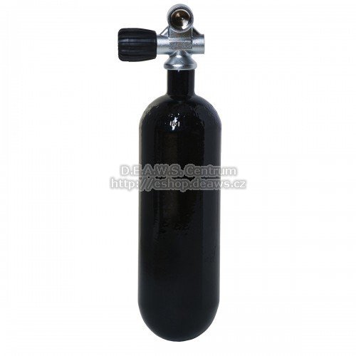 Ocelová potápěčská láhev s ventilem 1 L /83mm (úzká) na vzduch, argon, nitrox, 200 bar s kulatým dnem, bez botky. Nátěr černý komaxit.
