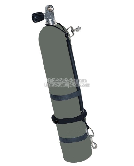 Kompletní stage láhev vč. postroje a ventilu. Velmi rozřířená a oblíbená láhev 5,7 litrů, 207 bar. Vhodná též jako dekompresní a postupová láhev označována též jako S40 (standard stage).Nepodléhající vnější korozi jako u lahvr leštěné nebo broušené. Dekompresní láhev pro použití hlavně na kyslík nebo EAN50. Technická specifikace: Velikost lahve: 40cuft (cca 5,7l) Závit v hrdle: M25x2 Průměr: 134 mm Výška: 645 mm Hmotnost: 6,9kg Vztlak - plná 0,32 kg Vztlak - prázdná 1,04 kg Pracovní tlak: 207bar Barva: natural Ventil: provozní tlak: 232 bar závit do lahve: M25×2 závit ventilu: DIN G5/8" gumové točítko čisté pro O2 výrobce SAN-O-SUB Obrázek je pouze ilustrativní