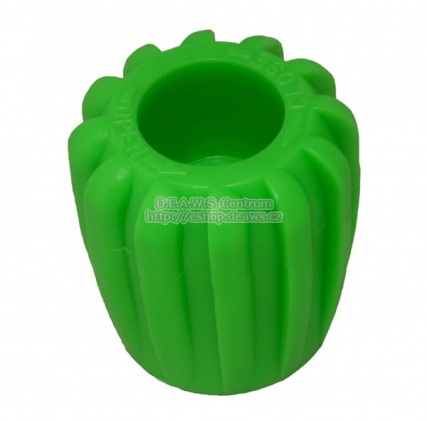 Gumové točítko ventilu (angl. rubber knob), kterým se doporučuje nahradit běžná plastová kolečka na ventilech potápěčských lahví. Na rozdíl od nich je tohle točítko mnohem odolnější nárazům. Tuto výhodu získává jednak díky použitému materiálu a zároveň volnosti na osičce. Při nárazu má točítko možnost uhnout a tak chrání sebe i osičku ventilu. Díky protáhlému tvaru na něj lze také snadněji dosáhnout v hodné je např. po manifoldy. A určitě oceníte lehkost, se kterou se s ním dají ventily láhví otevřít i zavřít. Vroubky na obvodu a měkčí materiál totiž umožňují snadné uchopení a otáčení. Lze použít na všechny ventily, které mají na osiččce koncový čtyřhran 5mm. Tech data: K produktu doporučujemeZeptejte se nás