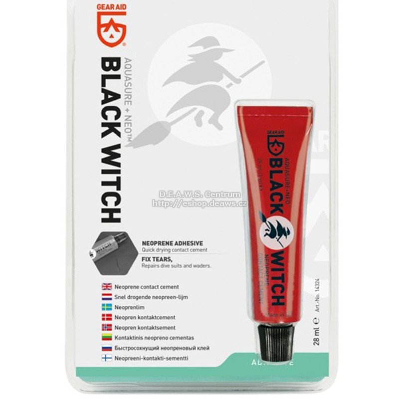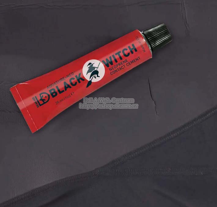 AQUASURE-NEO BLACK WITCH je rychleschnoucí lepidlo pro opravu poškození neoprenových částí výstroje (neoprenových obleků, rukavic, bot, návleků, brodících kalhot apod.). Oprava neoprenu tímto lepidlem je jednoduchá a rychlá, opravu lze provést během půl hodiny, doba schnutí je 20 minut. Nanesením přípravku na velmi exponovaná místa (kolena, lokty) je můžete ochránit před zvýšeným oděrem. Lepí neopren, latex, vinyl, i gumu. Slep je pevný, pružný, ohebný a vodotěsný.