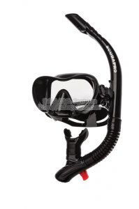 Tech. data: Bezrámečková konstrukce Jednozorníkový design nabízí nerušené zorné pole. Ultra Clear skla. Nízký objem usnadňuje odstraňování vody z masky a cvyrovnání tlaku. Přezky jsou kompatibilní s novými látkovými „comfort“ pásky ve stylu lyžařských brýlí. Horní část šnorchlu je vybavena klapkou pro omezení množství vnikající vody – nejedná se o suchý šnorchl jako např. Spectra Dry, při ponoření do něj voda nateče. Flexibilní spodní část. Ergonomický, vyměnitelný silikonový náustek Výdechový ventil umístěný v nejnižším bodě pro snadné odstranění vody ze šnorchlu. Šnorchl má integrovanou píšťalku. K dispozici v černé a čiré barvě. Dodáváno v síťované tašce.