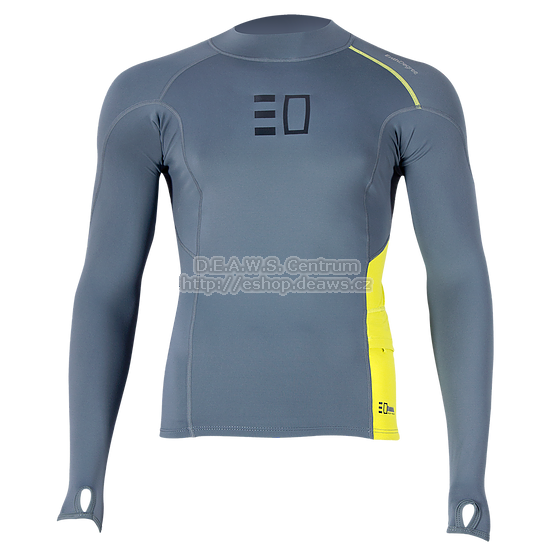 Bombora LS vrchní díl s dlouhým rukávem tvořen jedinečným materiálem 240gsm Activflex (Lycra) 1mm, který byl vytvořen speciálně pro vodní sporty. Paropropustnost materiálu Activflex zabraňuje přehřátí a vnitřní, kartáčovaná, velmi měkká a příjemná podšívka zabraňuje podráždění pokožky. Vynikající přilnavost oděvu s plochými švy a s ergonomickým designem zajišťuje, že oblečení perfektně sedí na těle při jakékoli sportovní aktivitě. Tech.data: Strečové panely Jemná vnitřní podšívka Vysoká tepelná izolace navzdory lehkému materiálu UV 50+ Designové prvky: Zesílený materiál u otvorů na palec Integrovaná funkční kapsa Jedinečné provedení střihu Vysoce reflexní potisk Komfortní ohrnutelná krční těsnící manžeta Znovu použitelné vodotěsné balení na oblečení Pánský a dámský specifický střih