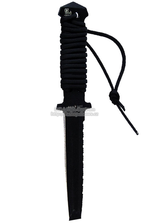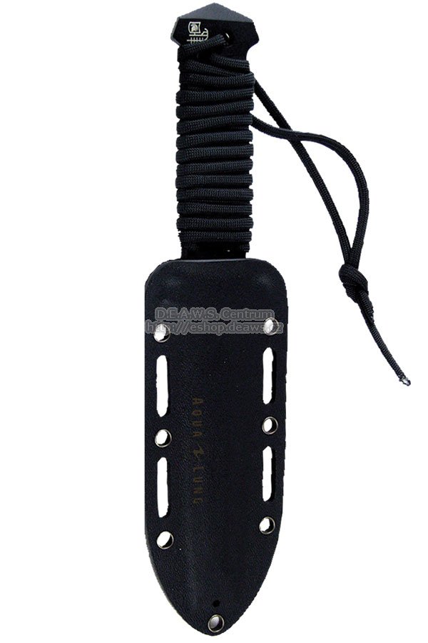 Potápěčské nože Argonaut byly navrženy tak, aby byly nejlepší a nejodolnější. Kompletní nůž je z jednoho dílu 4mm tlustého titanu obaleného dvakrát černým 5mm provázkem z EDP a zakončeného volným okem. Nůž je naostřen a má laserem vypálená loga. Pouzdro je vyrobeno z 2mm tlustého plastu Kydex a je opatřeno průchodkami (3,2mm) a laserem vypáleným logem Aqua Lung. Čepel Blunt je čepel s tupou špičkou pro páčení a šroubování se zářezy na jedné straně. Tech. data: Čepel a rukojeť jsou vyrobeny z 4mm tlustého Titanu, vysoce odolného proti korozi. Držadlo je dvojitě obaleno 5mm provázkem. Délka čepele 123,8mm, délka držadla 123,8mm. Zadní část rukojeti je uzpůsobená pro drcení a klepání. Pouzdro je z 2mm tlustého plastu Kydex se zamykáním s průchodkami 3,2mm. Otvory na pásky mají rozměry 25mm x 6,5mm. V balení jsou 2 gumové pásky.