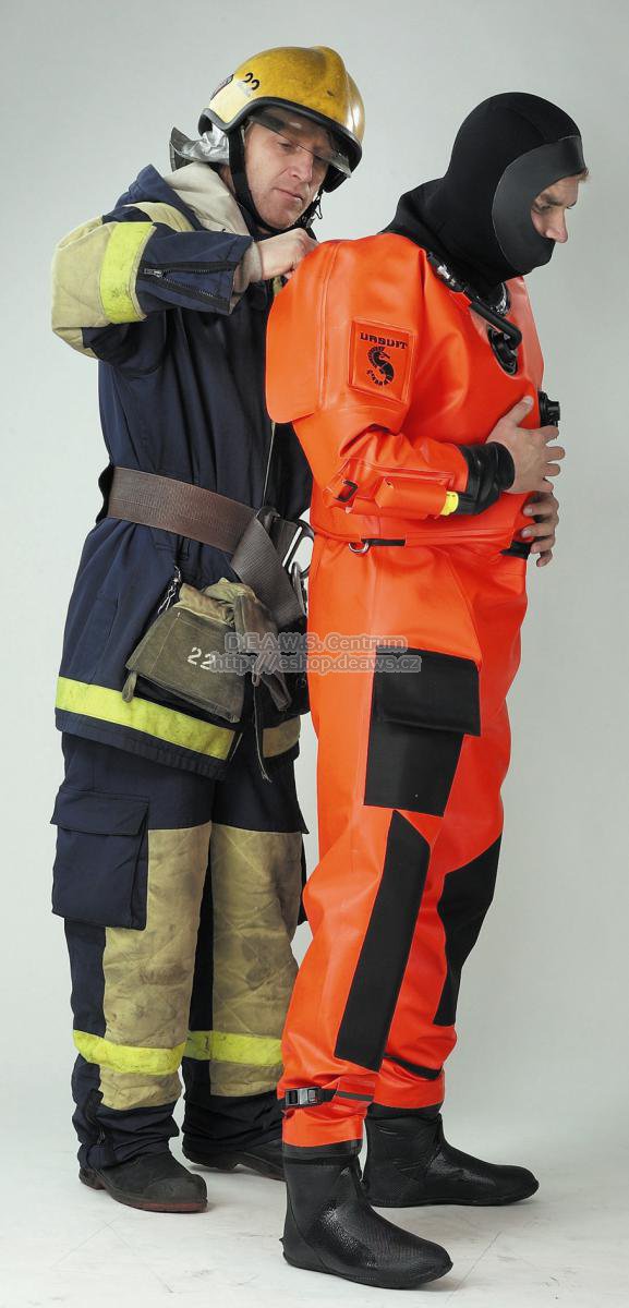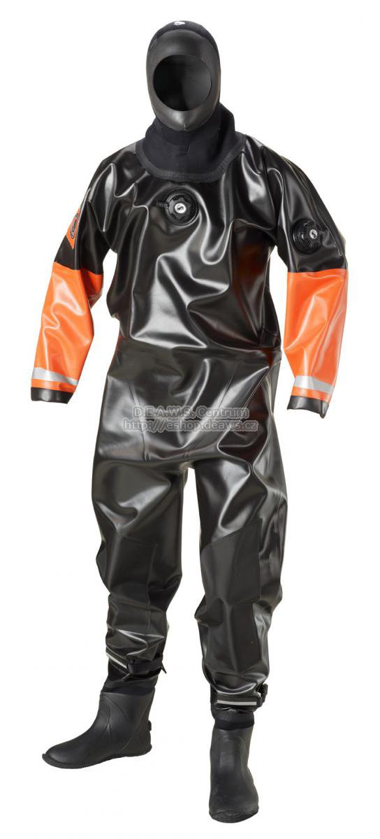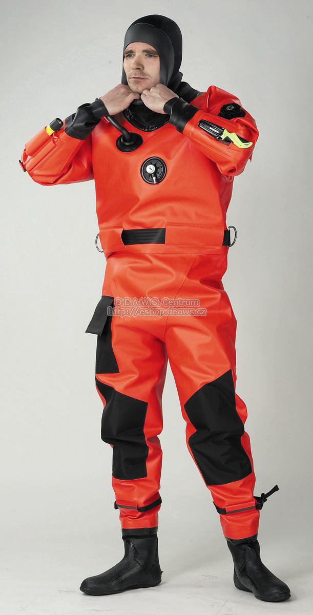 Oblek PURSUIT je určen pro použití při náročné práci a v extrémně znečištěných vodách. Tento model může být modifikován dle zvláštních požadavků (záchrana), nebo adaptován na potápění s potápěčskou přilbou. Materiál, konstrukce: Termoplastický polyurethan (TPU) je výborně odolný například proti ropným produktům a je jednoduché ho zbavit mazadel, nebo jiných nečistot. Švy tohoto obleku jsou spojeny a zatěsněny vysokofrekvenčním svařením a vyznačují se stejnou pevností, jako samotný materiál. Vysoká odolnost materiálu je doplněna ergonomickými prvky, které zajišťují komfort při používání. Namísto klasické neoprenové haubny lze dodat oblek i s nákrčníkem pro použití potápěčské přilby a místo neoprenových bot jsou k dispozici PU pracovní boty vyztužené ocelí. Dlouhodobou životnost obleku zajišťuje také zadní zip s krycí légou a o komfort při použití se starají integrované šle. Jako zvláštní doplněk pro záchranáře a záchranáře – potápěče lze doplnit oblek o integrovanou vztlakovou vestu. Dalším vhodným doplňkem jsou integrovaná vnitřní madla sloužící k rychlému oblečení obleku ve stísněných prostorech – např. požárním vozidle. Proč je Pursuit vhodný jako pracovní oblek pro profesionálního potápěče? Materiál je pružný jako většina gumových materiálů Velice odolný proti odření a protržení Velice odolný proti UV záření a olejům Dlouhá životnost, díky plně syntetickému materiálu nestárne Vysoce frekvenční svářené švy, velice silné, bez stehů, bez lepící pásky Rychle schnoucí, vodu odpudivý povrch Lehce se čistí, např. od oleje nebo znečištěné vody Lehce opravitelný Váží o polovinu méně než gumový oblek Obleky ve standardních velikostech nebo vyrobeny na míru Mechanické vlastnosti: TPU má výborné fyzikální vlastnosti. Extrémní odolnost proti tahu a trhání stejně jako elasticita mají za následek, že je tento oblek velice vhodný jako pracovní oblek. Odolnost proti opotřebení u TPU je vynikající. Mnoho výrobců obuvi používá TPU pro výrobu podrážek. A věděli jste, že kolečka u kolečkových bruslí jsou vyráběny rovněž z TPU?