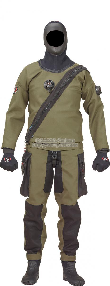 Verze 4. a 5. vypadají též velmi dobře, jsou často poptávány. Na přání jsou u těchto barevně dělených kombinací černé spodní díly prošity takovou barvou nitě, jako je barva horní části obleku. Vaši zvolenou barevnou kombinaci prosím uveďte do poznámky v objednávce! KonstrukcePřední zip umožňuje snadné oblékání bez potřeby pomoci. Krycí léga chrání suchý zip před oděrem a neumožní znečištění zipu pískem, nebo nečistotami. Uvnitř obleku jsou integrované šle, které ve spojení s pružným mezinožním popruhem vytváří teleskopický pas. Právě díky této teleskopické konstrukci se budete v obleku cítit stejně pohodlně jako v běžném oblečení. Na sedací části a holeních je oblek vybaven zesílením pro ještě větší odolnost. ŠvyPatentovaná technologie unikátních švů Ursuit s dvojitým těsněním poskytuje to nejdůležitější, co můžete od záruky na suchý oblek očekávat – celoživotní záruku na jejich pevnost a vodotěsnost. HaubnaUrsuit integrovaná haubna je též nazývána „suchou haubnou“ díky svému unikátnímu provedení, které nenajdete u žádného jiného výrobce. KapsyOblek je nově osazen dvěma zcela novými stehenními 3D kapsami. BotyBoty Ursuit jsou velmi pohodlné a teplé. Jejich tvar umožňuje použití jak sportovních, tak technických typů ploutví. Jsou vyrobeny z materiálu neopren 4mm, který je částečně pokryt latex ovou vrstvou. Tato kombinace zajišťuje vysoký tepelný komfort i bez použití speciálních ponožek. K běžnému použití zcela stačí dvě sportovní ponožky, ta vnější silnější, nejlépe vlněná. Pro delší expozice je doporučována speciální ponožka X-Tex Sock. Díky zarážkám na patách Vám budou ploutve výborně držet. VentilyVysoce kvalitní ventily Si-Tech umožňují snadnou regulaci vzduchu v obleku. Napouštěcí ventil, otočný o 360° snižuje namáhání přívodní hadice. Automatický nízkoprofilový vypouštěcí ventil je osazen filtrem a jednoduše se udržuje v čistotě. Pod napouštěcím ventilem je osazen neoprenovou chlopní, která brání přímému přístupu chladného vzduchu na tělo. Ventily jsou opatřeny novými logy. ManžetyLatexová krční manžeta je vytvarována ve spodní části a snadno se přetáhne přes hlavu za pomocí rukou. Latexové zápěstní manžety lahvového provedení jsou trvanlivější a zajišťují lepší tepelný komfort, než provedení kuželovitého tvaru, vzhledem ke kratší zúžené části. PříslušenstvíOblek je dodáván v praktickém přepravním a skladovacím vaku. Součástí balení je středotlaká hadice, drcené mýdlo pro snazší oblékání manžet, vosk pro mazání suchého zipu, servisní sada pro rychlé lepení a pletená čepice nebo kšiltovka Ursuit. Doplňky na přání