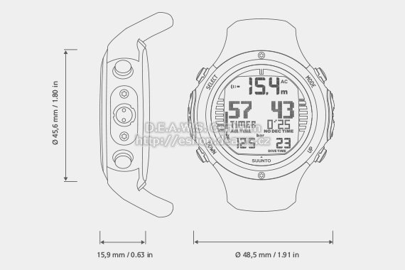 Řada potápěčských hodinek Suunto D6i NOVO je správnou volbou pro ty, kteří berou potápění vážně. S novým 3D kompasem s kompenzací sklonu a bezdrátovou integrací vzduchu se jedná o nezbytný nástroj v případech, kdy ostatní spoléhají na vaše potápěčské dovednosti. Je velmi snadné připojit se na Movescount.com, kde můžete sdílet záznamy vašich ponorů, stejně jako fotografie, videa, informace o potápěčských lokalitách, plánované akce atd. s přáteli a potápěči na celém světě. Tech. data, f-ce, vlastnosti: Možnost přepínání mezi třemi směsi (kyslík 21-99%), max. pO2 1,2-1,6 Suunto RGBM algoritmus Volitelná sonda pro bezdrátový přenos tlaku vzduchu v lahvi + odhad zbývajícího času vzduchu Integrovaný digitální 3D kompas s kompenzací sklonu Plně kontinuální dekompresní algoritmus Možnost přepínání směsí 5 potápěčských módů: Air, Nitrox, Free, Gauge a Off Zabudovaný plánovač ponorů Detailní grafické záznamy ponorů na vašem PC pomocí softwaru Suunto DM5 Software+ Movescount Možnost aktualizovat software Elastomerový náramek Ocelové pouzdro a safírové sklíčko s antireflexní vrstvou Maximální operační hloubka 120m Bezdrátový přenos tlaku v lahvi bez rušení. Suunto D6i NOVO vám umožňuje použití bezdrátové sondy pro sledování zásoby vzduchu v lahvi přímo na vašem zápěstí. K dispozici je též aktuální odhad času zbývajícího vzduchu během ponoru. Inovativní technologie kompasu. Elektronický 3D kompas Suunto s kompenzací sklonu udává nový rozměr podvodní navigace. Je jedno, pod jakým úhlem sledujete kompas na vašem zápěstí, vždy dostanete přesná data pro správný směr. Sdílejte vaše potápěčské zkušenosti. Použitím software Suunto DM5 + Movescount na vašem laptopu můžete jednoduše synchonizovat Suunto D6i NOVO s online komunitou Movescount.com, kde můžete ukládat a sdílet informace o vašich ponorech včetně fotografií a video záznamů. Můžete také sdílet informace o potápěčských lokalitách a stránkách o potápění s potápěči z celého světa. Všestranné použití. Suunto D6i NOVO má 5 potápěčských módů. Mód Air je určen pro ponory se standardním vzduchem, mód Nitrox pro využití jedné nebo dvou směsí nitroxu a mód Gauge coby hloubkoměr s časomírou. Suunto D6i NOVO vám také nabízí speciální mód Freedive velmi vhodný pro freedivery.