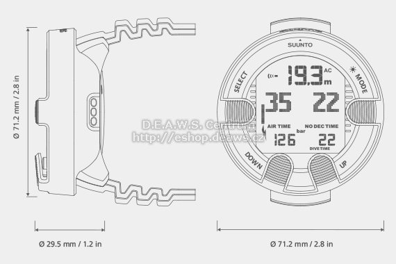 Díky zkušenostem, získávaným v průběhu mnoha let studia technologie saturace, firma SUUNTO pečlivě dolaďovala matematický model stojící za jejími počítači. SUUNTO dekompresní model s redukovaným gradientem RGBM, který Vyper využívá, je moderní algoritmus zohledňující jak rozpuštěný, tak i volný plyn v krvi a tkáních potápěčů, kteří provádějí široké spektrum profilů ponorů. Tech.data: Pět provozních módů: Air, Nitrox (až 3 směsi, 21-99% O2), Freedive, Gauge a Off Integorvaný 3D digitální kompas Provozní hloubka 80 m (vodotěsnost 120m) Zabudovaný simulátor ponorů včetně vizuálních a zvukových alarmů Parciální tlak kyslíku v rozmezí 1,2 až 1,6 bar Funkce plánování ponorů pro přesné naplánování opakovaných ponorů Jedinečné funkce doživotní paměti - historie ponorů uchovává celkový počet uskutečněných ponorů Celkové „odpotápěné“ hodiny Absolutní hodnota maximální dosažené hloubky. Rozsáhlý deník ponorů – „logbook“ Paměť profilů ponorů (36 hodin při 20-ti sekundovém intervalu vzorkování) Možnost ukládání poznámek do paměti profilu během ponoru Stahování dat do PC pomocí SW Suunto DM5 software - analýza dat ponoru, grafický logbook, kabel je součástí balení Ochrané gumové pouzdro v balení Výkonné elektroluminiscenční osvětlení s vysokým jasem, dobu svícení si může potápěč nastavit od 5 do 30 sekund anebo může osvětlení zcela deaktivovat Součástí balení je též obal, bungee adapter, bungee (1m) a ochrana displeje