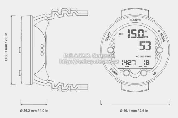 Specifikace: SUPER BRIGHT fosforeskující LCD displej Velmi snadné ovládání Na zápěstí, nebo jako modul pro namontování na konzoli Provozní hloubka 80 m (vodotěsnost 120m) Pět provozních módů: Air, Nitrox (jedna směs 21% až 50% O2), Freedive, Gauge a Off Parciální tlak kyslíku v rozmezí 1,2 až 1,6 bar Dekompresní algoritmus Suunto RGBM Zobrazení výstupové rychlosti a dekompresního času na displeji Vizuální a zvukové alarmy, které vás upozorní mimo jiné na překročenou maximální hloubku a uplynulý čas ponoru (nastavitelné) Plánování ponoru před vstupem do vody Sstahování dat do PC pomocí SW Suunto DM5 software - analýza dat ponoru, grafický logbook Uživatelsky výměnitelná baterie Balení obsahuje: Suunto ZOOP NOVO WILDBERRY Ochranu displeje Rychlý průvodce Záruční list a bezpečnostní list Suunto samolepku