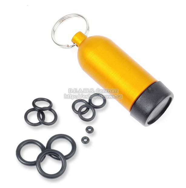 Praktický přívěšek na klíče v podobě malé potápěčské lahve ve které můžete mít potřebné O-kroužky vždy po ruce. O-kroužky nejsou součástí přívěšku, ale po domluvě vám je můžeme dodat dle vašeho požadavku:-) Zeptejte se nás