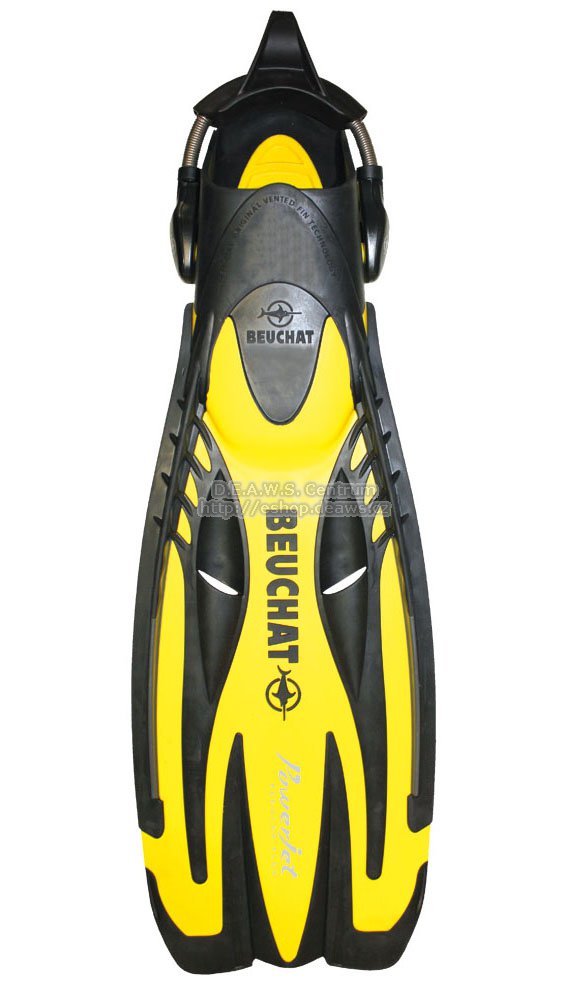 Ploutve Power Jet obnovily tradici značky Beuchat v kategorii ploutví Jet Fin. Power Jet je charakterizován jako komfortní produkt s výborným provedením, promyšleným designem a důmyslné kombinaci tří materiálů s dokonalou ohebnosti listu ploutve. Ploutve jsou doplněny pružinami. Tech. data: Nastavitelné ploutve vyrobené ze tří různých materiálů s výkonnými tryskami. Exkluzivní technologie Beuchat Powerjet výrazně snižuje negativní zóny bez tuhnutí čepele. Dvě trysky Power Jet usměrňují tok vody a zabraňují tak tuhnutí konstrukce. Exkluzivní design bočních žeber vytváří při pohybu pružinový efekt. Díky ultra-flexibilním materiálům a unikátnímu tvaru zakončení čepele se budete pohybovat velice přesně. Anatomicky tvarované a extra pohodlné botky. Pružinové řemínky a otočné přezky.