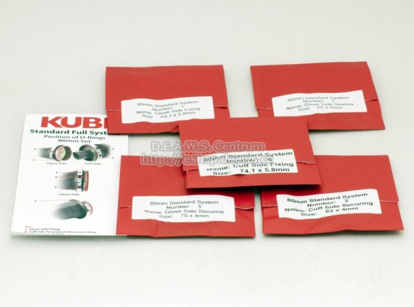 Kompletní sada náhradních o-kroužků pro systém suchých rukavic KUBI. Obsahuje všechny potřebné o-kroužky pro jednu stranu rukávu suchého obleku. Tedy kroužky pro jeden rukáv a jednu rukavici. Při výměně kroužků na celém suchém obleku tedy potřebujete tyto sady dvě! Zvolte si při objednávce správný průměr kruhů ve kterých potřebujete o kroužky vyměnit! Rozměry O-kroužků: