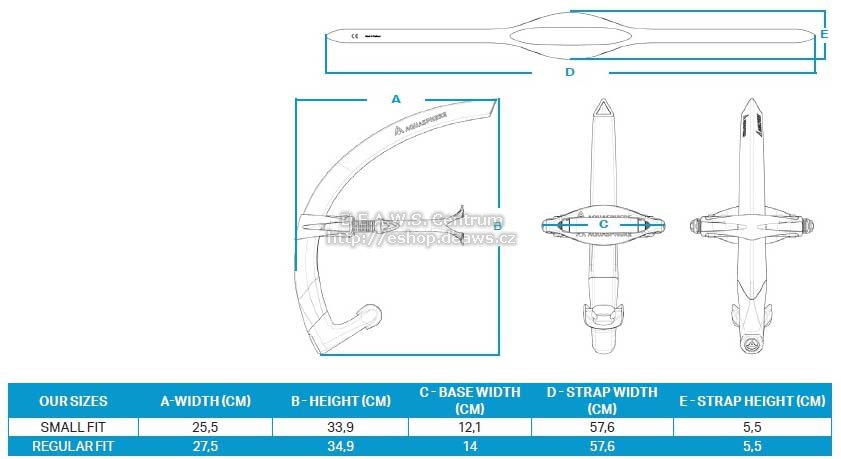 Tech. data: Nastavitelná čelenka s polstrováním pro pohodlné nošení. Rychlé a snadné nastavení pásku. Lehká konstrukce. Unikátní nízko-profilový hydrodynamický tvar snižuje tření a usnadňuje dýchání. Čelní umístění, jeden výdechový ventil pro snadné vydechnutí vniklé vody. Díky šípovému profilu nabízí skvělou stabilitu při plavání ( neklepe se )