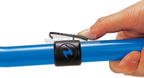 Držák šnorchlu poskytuje rychlý a snadný způsob nasazení šnorchlu na pásek masky