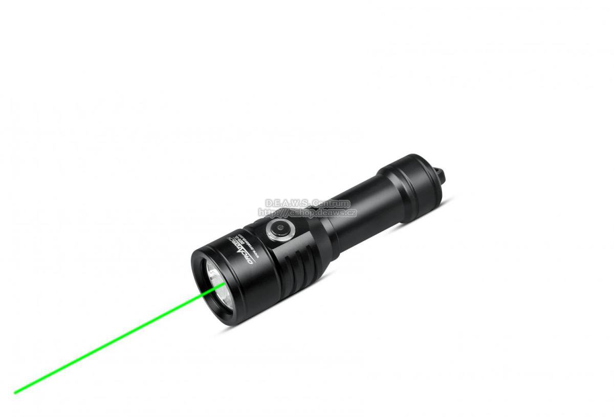 Orcatorch svítilna D570-GL je speciálně navržena pro rekreační a komerční potápění. Max. výstup až 1000 lm. Kromě bílého světla nabízí rýchlý přístup k zelenému laseru. Dva světelné zdroje lze ovládat tak, aby vyhovovaly vašim různým scénám použití. 2v1 - světelný paprsek + laser Schopnost pohodlně zaměřit a signalizovat je nyní zajištěna zeleným laserem. Nejedná se pouze o potápěčské signalizační zařízení, ale o 1000 lumenů! Tech. data: dva zdroje světla: 8° bílý paprsek + zelené laserové světlo - lze je ovládat nezávisle max. výstup 1000 lm výdrž: bílé světlo 1h 51min, laser 13h 36min používá jednu Li-ion baterii 18650 doba svícení: 1 h 51 min snadné ovládání pomocí bočního spínače z titanové slitiny indikátor baterie - počas ponoru ukazuje stav baterie inteligentní ochrana před přehrátím konstrukce odolná do 150 m ochrana proti přepólování, ochrana před nesprávnou instalací baterie ochrana proti vybití vysoceodolný hliníkový materiál nejnovější tvrdě eloxovaná povrchová úprava diamantem - odolnost proti korozi a mořské vodě dvojité tvrzené sklo