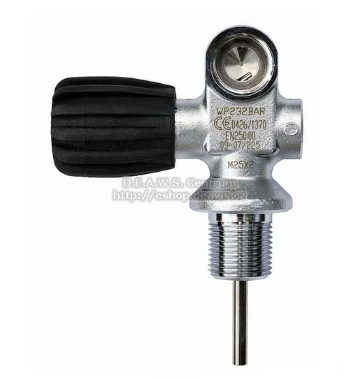 Levý mono ventil 232 bar na potápěčskou tlakovou láhev. Tech.data: Provozní tlak: 232 bar Závity do lahve: M25×2 (součástí ventilu je o- kroužek i sací trubička) Závit ventilů: DIN G5/8" Gumové točítko Čsté pro EANx do 40% O2 Součástí balení je redukce na INT.