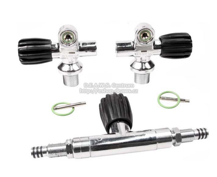 Kompletní sestava ventilů pro twin (dvojče), volitelně v rozměru 140, 171, 178 nebo 204 mm pro spojení dvou láhví (Twin) Tech.data: Kompletní manifold - pravý ventil + levý ventil + propojení s uzavíratelným můstkem pro potápěčské tlakové láhve s provozním tlakem 200 - 230 bar. Provozní tlak: 232 bar Závity do lahve: M25×2 Závit ventilů: DIN G5/8" Gumové točítko Čsté pro EANx do 40% O2