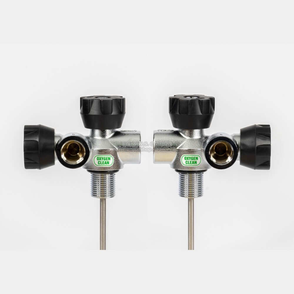 Set pravého a levého speleo ventilu 2xDIN pro volba - 200/ / 300 bar určených převážně pro dvoumontáž a SCR přístroje. Ventily jsou kyslíkově čisté (nitrox).