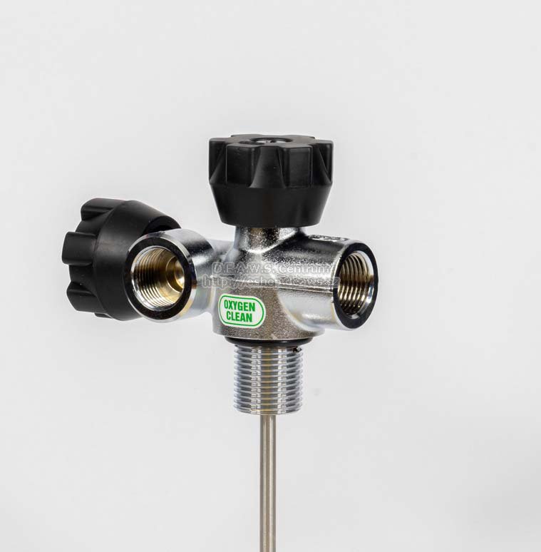 Speleoventil nitroxový (kyslíkově čistý) 2xDIN pro volba - 200/ / 300 bar určený převážně pro dvoumontáž a SCR přístroje.