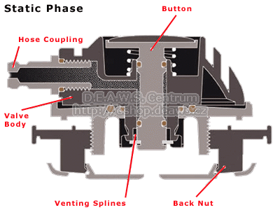 Nízkoprofilový napouštěcí ventil pro suché obleky. Pohodlné tlačítko pro napouštění. Ventil je otočný o 360°
