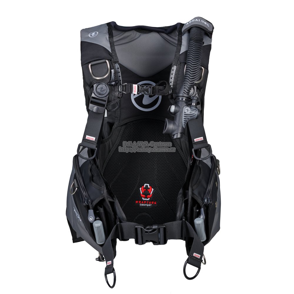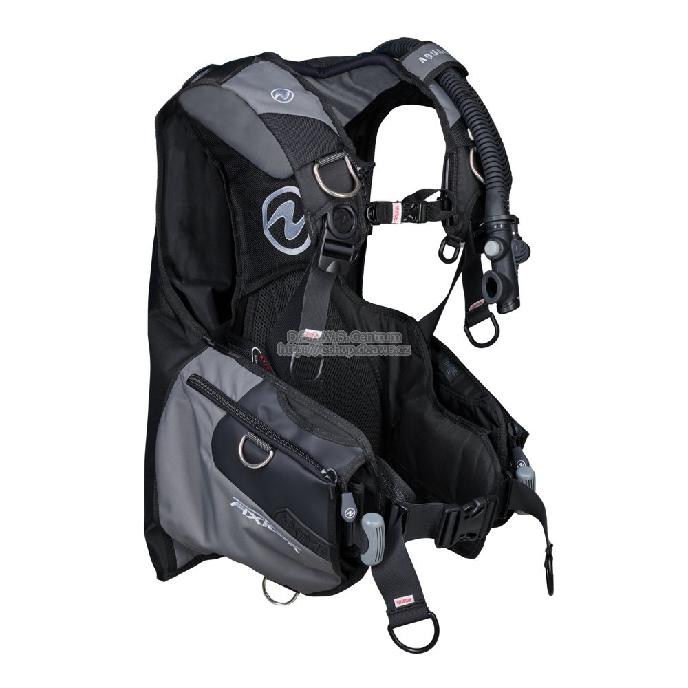 Axiom je odolný, plně vybavený kompenzátor, který ohromuje úžasným pohodlím. Tento jacket získává svůj jedinečný komfort díky patentovanému systému uchycení popruhů Wrapture™. Tento systém vám umožní stát pohodlně zcela rovně s pevně upnutou lahví ve vertikální poloze. Toto pohodlí, společně s inovativním popruhem na lahev GripLock™ a integrovaným systémem zátěže SureLock II činí z Axiomu zcela nový standard pro rekreační potápěče. Tech.data: Systém Wrapture™, který používá patentované otočné přezky ramenního popruhu, úchytný pásek na ventil lahve a tvarovanou zádovou desku poskytuje pohodlí a stabilitu a zabraňuje možnému pohybu jacketu po těle při vynoření. Popruh lahve GripLock™ umožňuje nejsnadnější upevnění lahve jaké tu kdy bylo. Pryč jsou dny komplikovaného provlékání a už se ani nemusíte bát skřípnutí prstů (patentovaná ochrana prstů). Patentovaný systém zátěže SureLock II poskytuje snadnou manipulaci. Systém zatažení vzduchového vaku. Nastavitelný prsní popruh. Kapsa na octopus na pravé přední straně usnadňuje uložení a vyndání octopusu, který navíc zůstane neustále viditelný a nadosah. Užitečná je také možnost prostrčení hadicových měřících přístrojů na hadici za levou kapsou a vytažení dopředu. Nový design vzduchové komory činí z Axiomu jeden z nejaerodynamičtějších jacketů na světě. Nízkoprofilové ploché ventily mají nižší odpor při pohybu ve vodě. Vyvažovací kapsy na popruhu lahve zvyšují zátěžovou kapacitu a napomáhají správnému vyvážení ve vodě. Velké kapsy na příslušenství na obou stranách jsou opatřeny zipy. Na levé straně jsou průchodky pro upevnění nože. Velká táhla výpustných ventilů. 5 nerezových a 1 plastový D-kroužek. Výpustný ventil na pravém rameni lze snadno nahmatat a použít. Pohodlný rolovaný límeček. Na žaket skvěle pasují nože Aqualung squeeze blunt tip blade nebo Aqualung spear tip blade (nože najdete v doporučených produktech pod žaketem)