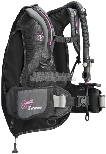 Zuma je nejlehčí jacket na trhu, který má integrovaný zátěžový systém. Zuma je právě pro ty potápěče, kteří jsou již unaveni z placení poplatků za nadměrné zavazadlo. Tento ultralehký kompenzátor se zadním napouštěním ( křídlo ) a integrovanou zátěží má vše co potřebujete. Pokud ho potěžkáte, tak zjistíte že velikost SM/MD váží pouze 2kg, včetně inflátoru a zátěžových kapes! Na tomto kompenzátoru vztlaku jsou nejnovější ploché vypouštěcí ventily. Charakteristika: Inovativní systém opory lahve eliminuje potřebu pevné zádové desky. Popruh K pokrytí všech rozměrů od XXS až po XXL stačí pouze 2 dámské velikosti. Nastavitelný prsní popruh lze posunout na ramenním popruhu nahoru i dolů. Patentované ploché ventily (e-valve) snižují profil kompenzátoru. Rozvinovací kapsa na pravé straně je snadno dosažitelná. Na 4 plastové d-kroužky lze přichytit rozličné příslušenství. Kompezátor obsahuje kroužky pro přichycení nože. Výpustný ventil je na pravém rameni a vzadu na pravé straně. Ramenní popruhy, výztuž páteře a beder jsou anatomicky tvarovány a Volitelné zátěžové kapsičky na popruh lahve lze objednat zvlášť. Zumu můžete pohodlně sbalit do potápěčského batohu, zabere méně místa než ostatní kompenzátory na trhu.
