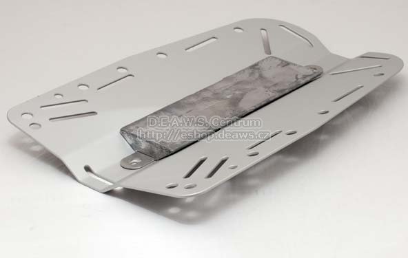 Zátěž určená pro vložení do prolisu backplate. Zátěž naprosto nepřekáží a snadno se s ní manipuluje. Připevňuje na šrouby, kterými se backplate montuje k lahvím. Rozteč šroubů je standardní 280mm. Velmi praktické dovážení, jak s mono lahví nebo dvojčaty. Celková hmotnost 2,6kg.